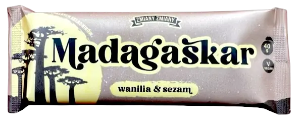 Baton bakaliowy o smaku chałwy, wykonany w 100 % z naturalnych roślinnych składników. Przetworzony wyłącznie mechanicznie, bez obróbki termicznej. Nie zawiera dodanego cukru, konserwantów, aromatów, spulchniaczy i utwardzaczy ani żadnych dodatków chemicznych. Wegański, bezglutenowy, bez laktozy.
