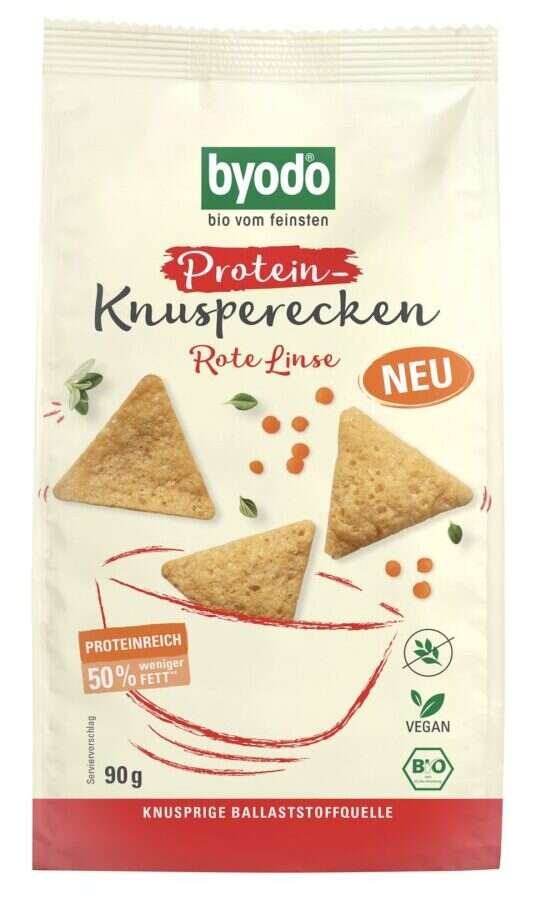 Chrupki proteinowe zawierają 23 g białka na 100 g produktu, co stanowi nawet 5 razy więcej niż w tradycyjnych chipsach. Białko wspomaga wzrost i utrzymanie masy mięśniowej, dzięki czemu jest idealnym wyborem na redukcji i w okresie budowania masy.