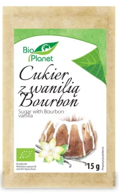 Ekologiczny cukier z dodatkiem wanilii Bourbon polecamy do ciast, ciasteczek i deser贸w.