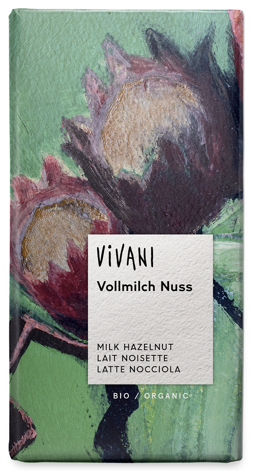 nierafinowany cukier trzcinowy*, ORZECHY LASKOWE* (26%), tłuszcz kakaowy*, MLEKO pełne w proszku*, miazga kakaowa*, ŚMIETANA w proszku* (zawiera MLEKO), odłtuszczone MLEKO w proszku*, ekstrakt z wanili Bourbon* (*certyfikowany składnik ekologiczny)