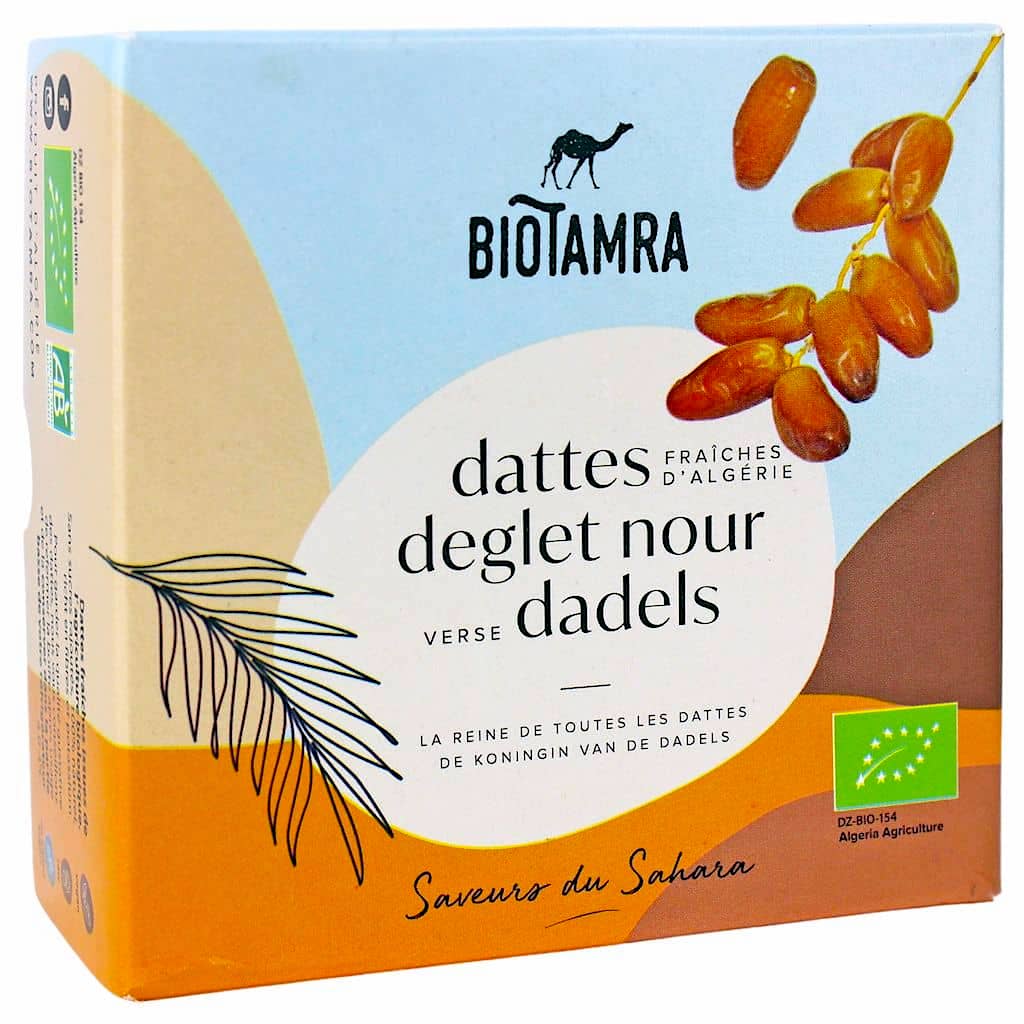 Daktyle Deglet Nour z Algierii, bez dodatku cukru, ekologiczne i w 100 % naturalne. Daktyle Biotamra są produktem rzemieślników powtarzających te same gesty od siedmiu pokoleń.