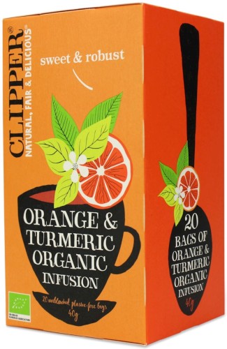miodokrzew*, kurkuma* 20 %, skórka z pomarańczy* 16 %, korzeń lukrecji*, naturalny aromat pomarańczy 5 %, biały hibiskus*, cykoria*. (*certyfikowany składnik ekologiczny).