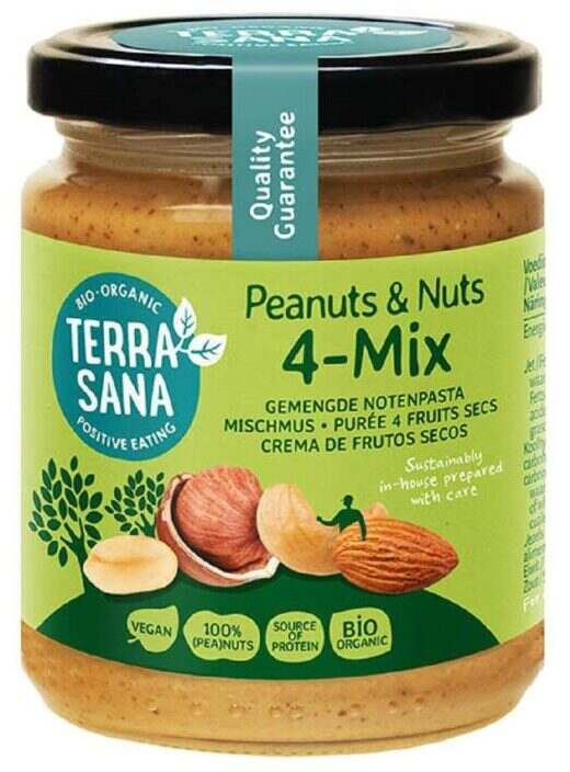 prażone ORZESZKI ZIEMNE* (55 %), prażone ORZECHY* (45 %) (laskowe*, NERKOWCA*, MIGDAŁY*) (*certyfikowany składnik ekologiczny)