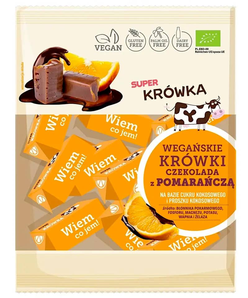 Wegańskie krówki czekoladowo-pomarańczowe to smak, który pokochasz! Ekologiczne, bezmleczne krówki o smaku czekolady z pomarańczą to harmonijne połączenie głębokiego aromatu kakao z odświeżającą nutą cytrusów. Powstają z naturalnych składników najwyższej jakości, bez laktozy, glutenu i sztucznych dodatków. Ich delikatna konsystencja i wyjątkowy smak sprawiają, że to świetna alternatywa dla klasycznych słodyczy. Sprawdź!