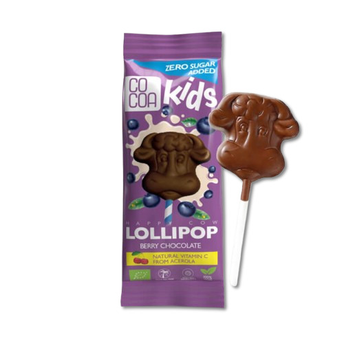 Ofiaruj swojemu dziecku odrobinę słodkiej radości. Wegański lizak z czekolady jagodowej spowoduje uśmiech na twarzy twoich pociech. Wykonany z ekologicznych składników bez MLEKA i białego cukru, jest doskonałą alternatywą dla masowo produkowanych słodyczy.
