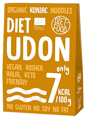 Makaron konjac udon to naturalny produkt w 100% roślinny, wytwarzany z ekologicznej mąki konjac i bogaty w cenny błonnik glukomannan. Nie zawiera tłuszczu, cukru, skrobi, pszenicy ani glutenu, dzięki czemu jest idealny dla osób dbających o linię i na diecie keto. Dzięki neutralnemu smakowi doskonale wchłania aromaty przypraw i sosów, tworząc lekkie, a zarazem sycące dania. Pochodzi z Azji, gdzie od wieków znany jest jako Shirataki lub Konnyaku Noodles, a jego wyjątkowe właściwości docenili Japończycy. Szybki w przygotowaniu, przezroczysty i certyfikowany przez JAS – to idealny wybór dla miłośników zdrowej kuchni.