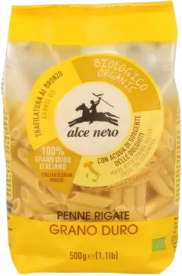 Wyśmienity makaron z ekologicznej mąki z PSZENICY durum. Polecamy z sosami pomidorowymi Alce Nero.