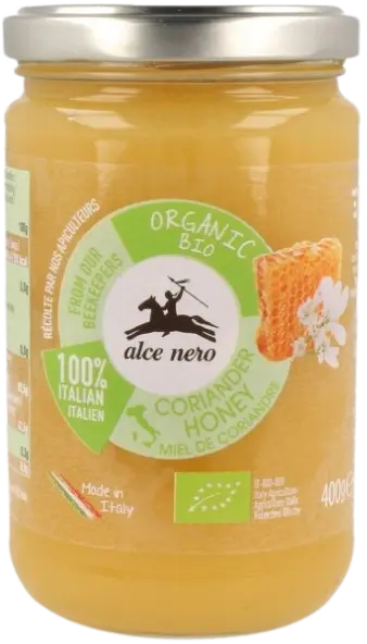 Włoski miód z kolendry Alce Nero jest łagodny w smaku z nutą karmelu. Jest dobry do słodzenia oraz do przyrządzania deserów. Produkt nieodpowiedni dla dzieci poniżej 12 miesiąca życia.