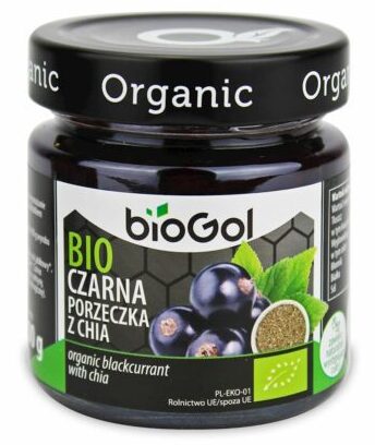 czarna porzeczka*, zagęszczony sok jabłkowy*, nasiona chia – nasiona szałwii hiszpańskiej* (Salvia hispanica) (1 %), substancja zagęszczająca: pektyny, sok z cytryny* (*certyfikowany składnik ekologiczny)