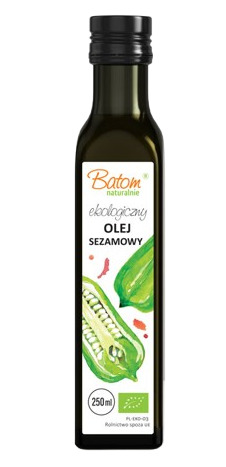 Olej sezamowy otrzymywany w procesie tłoczenia na zimno ekologicznych nasion sezamu. Najlepszy do stosowania na surowo jako dodatek do surówek i sałatek. Oleju można także używać do gotowania, pieczenia i smażenia: zalecana maksymalna temperatura to 180 °C.