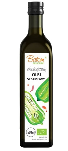 Olej sezamowy otrzymywany w procesie tłoczenia na zimno ekologicznych nasion sezamu. Najlepszy do stosowania na surowo jako dodatek do surówek i sałatek. Oleju można także używać do gotowania, pieczenia i smażenia: zalecana maksymalna temperatura to 180 °C.
