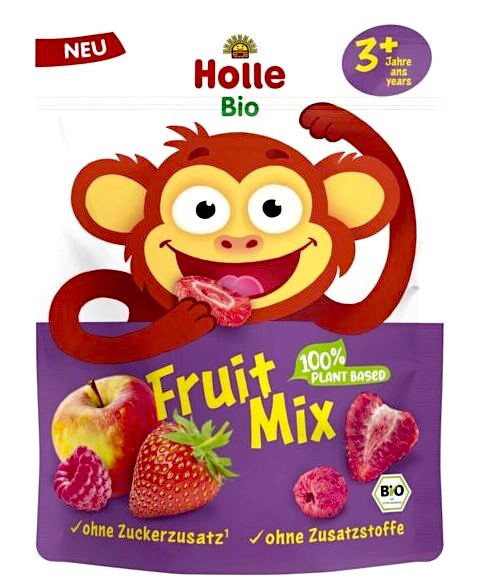 liofilizowane plastry truskawek* 40 %, liofilizowane kawałki jabłek* 40 %, liofilizowane maliny* 20 %. (*certyfikowany składnik ekologiczny)