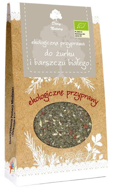 czosnek*, cebula*, majeranek*, marchew*, pietruszka korzeń*, liść laurowy*, ziele angielskie*, SELER*, pieprz czarny* (w różnych proporcjach) (*certyfikowany składnik ekologiczny)