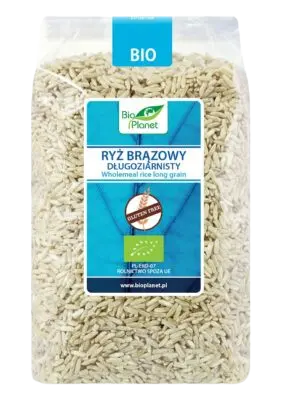 Ekologiczny ryż brązowy długoziarnisty zachowuje wszystkie cenne składniki znajdujące się w łusce, dzięki czemu jest bardziej wartościowy niż ziarno obłuszczone. Ryż brązowy polecamy jako dodatek do dań mięsnych, sałatek oraz dań egzotycznych.