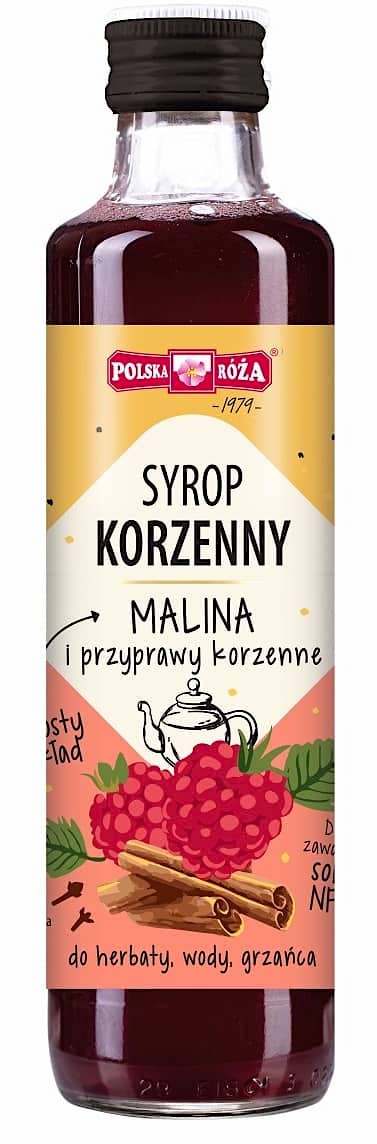 cukier, napar z przypraw korzennych 25 % (woda, anyż, cynamon, goździki), sok NFC z malin 20 %, regulator kwasowości: kwas cytrynowy.