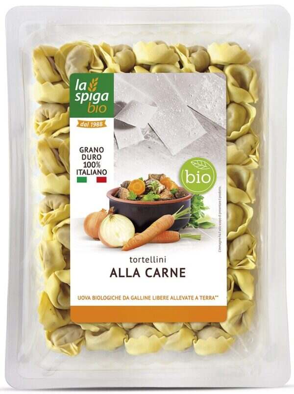 semolina* (mąka z PSZENICY durum), wołowina* 14 %, JAJA* 10 %, bułka tarta* (mąka PSZENNA* typ „0”, drożdże, sól), woda, MASŁO*, olej słonecznikowy*, cebula*, SELER*, SER Parmigiano Reggiano* DOP (MLEKO krowie*, sól, podpuszczka), sól morska, szałwia*, rozmaryn*, kolendra*, pieprz*. (*certyfikowany składnik ekologiczny)
