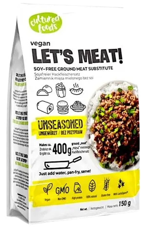 Zamiennik mięsa mielonego bez SOI, roślinny i naturalny, bogaty w białko, bezglutenowy i wzbogacony kulturami LactoSporereg.