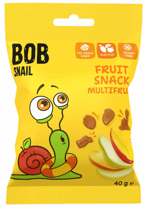 Żelki wieloowocowe Bob Snail Fruit Snacks powstały w 100 % z owoców. Naturalne przekąski owocowe te są stworzone bez aromatów, bez dodanego cukru, są bezglutenowe. Nowa przekąska w rodzinie Bob Snail – nieduże smakołyki w kształcie owoców i ślimaczków. Wesołe postacie, kolorowe opakowanie.