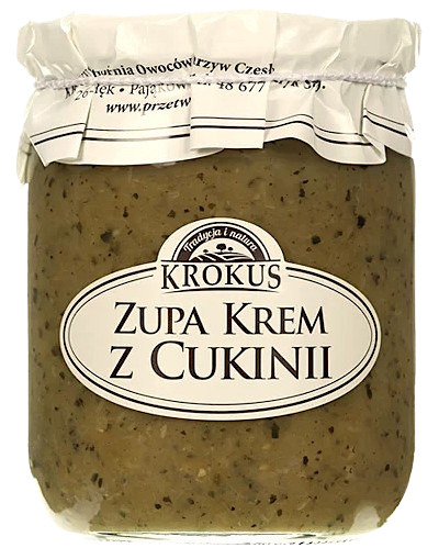 przecier z cukinii (85 %), cebula, marchew, olej roślinny rzepakowy, czosnek, sól, pieprz czarny mielony, pietruszka suszona natka, koper.